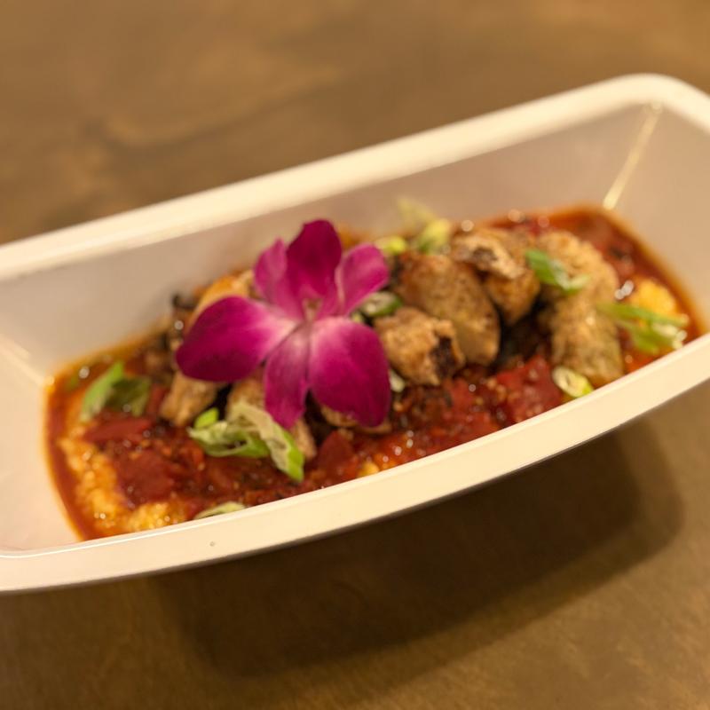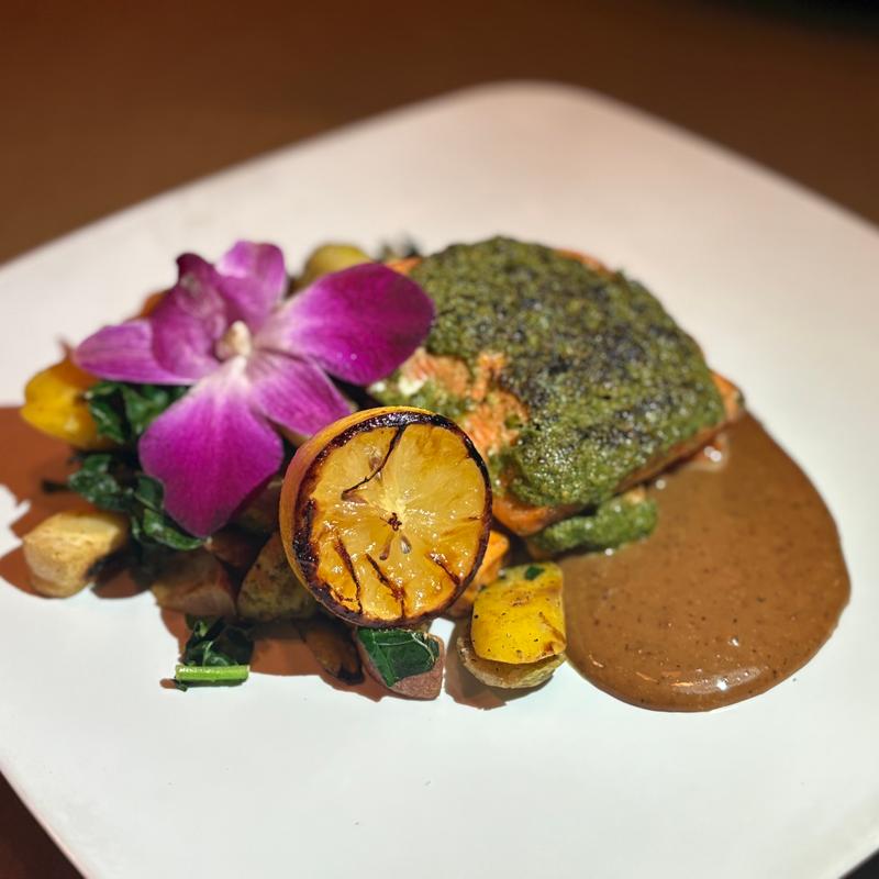 House dressing options: Maple Balsamic (V), Red Onion Vinaigrette (V), Creamy Russian (V), or Sesame Ginger (V), Gorgonzola, and Buttermilk Ranch • All House dressing are gluten-free.